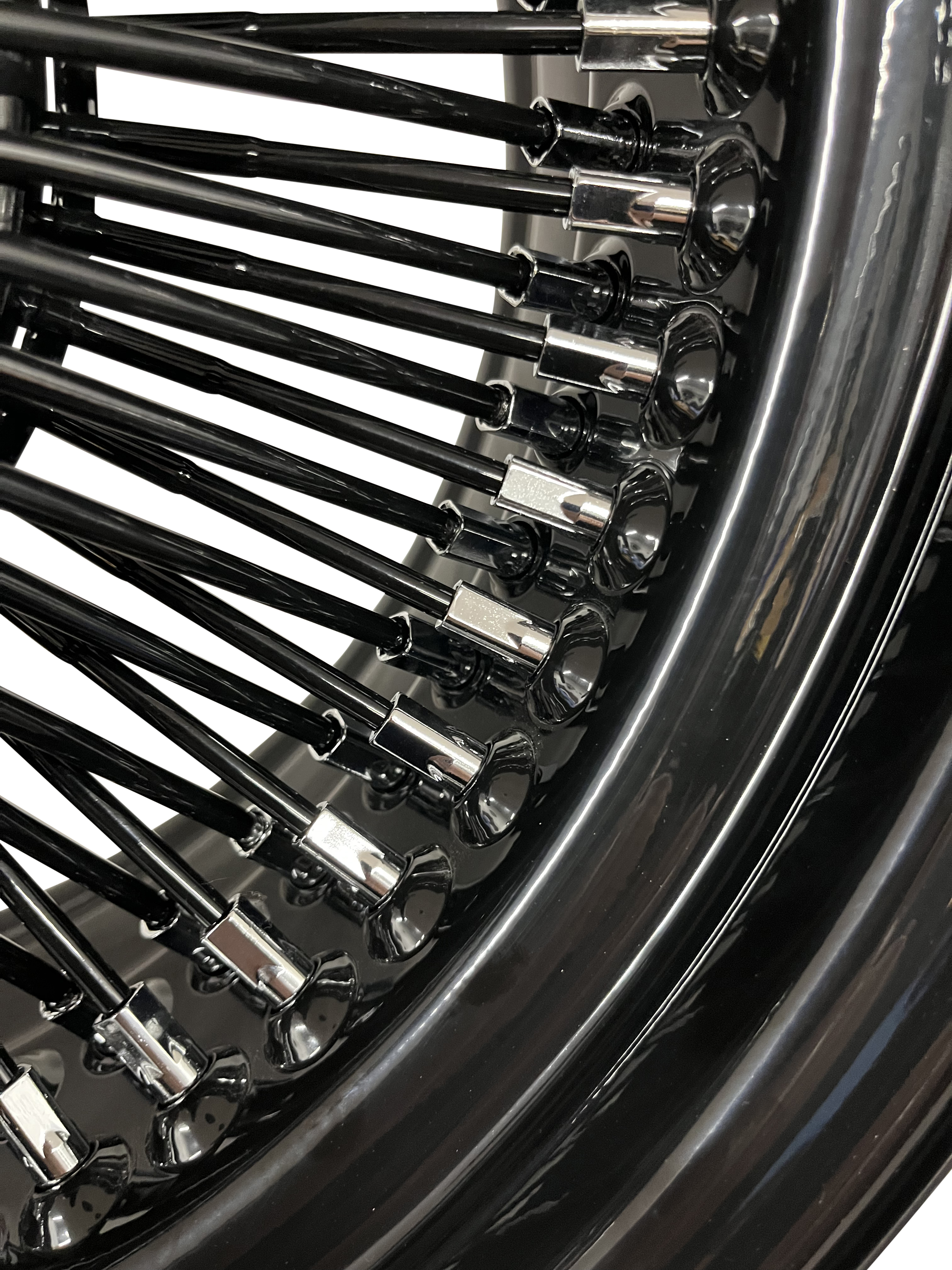 Mobile Preview: Show Wire Wheels Straight 100 Speichen Schwarz, Chrom Nippel 15x10 5x5